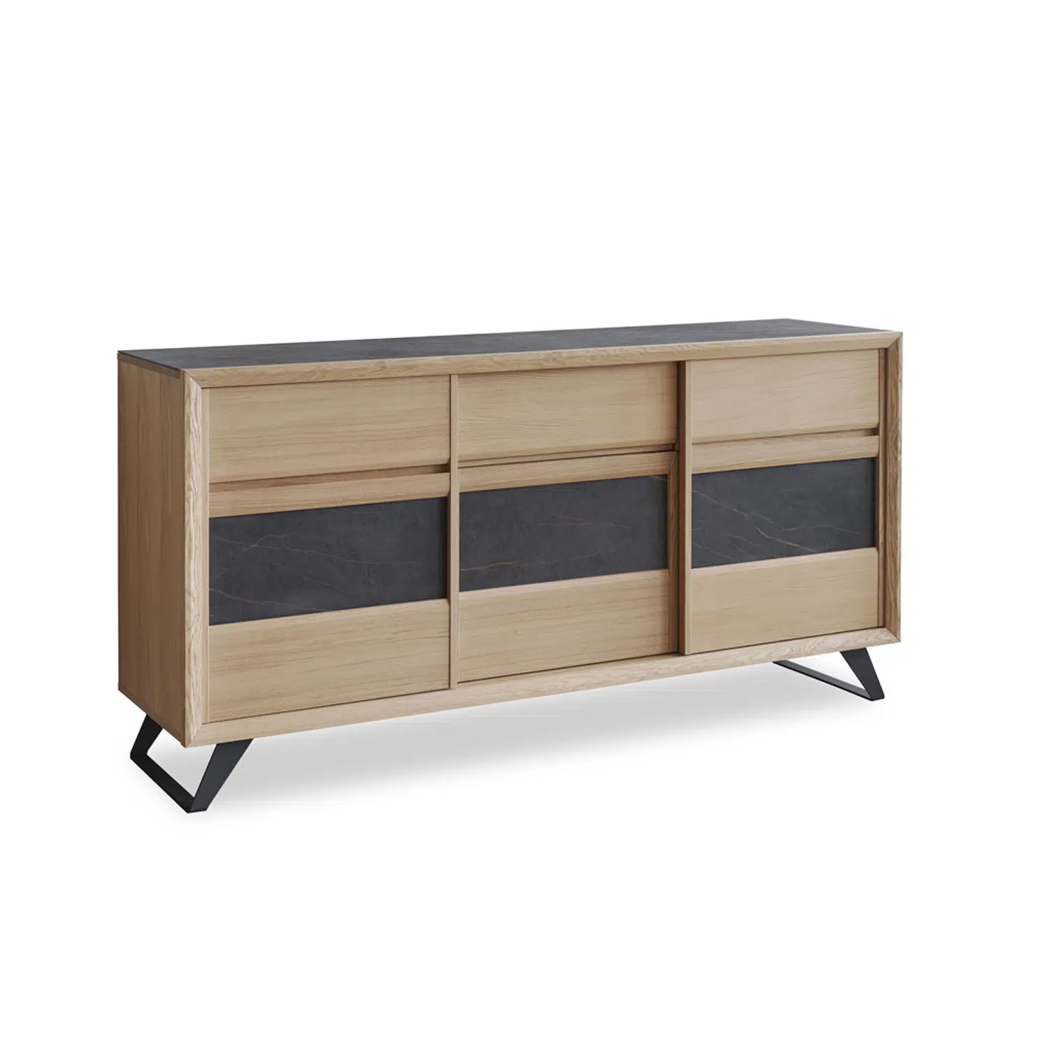 Côtés: Panneaux de particules revêtus de placage chêne.