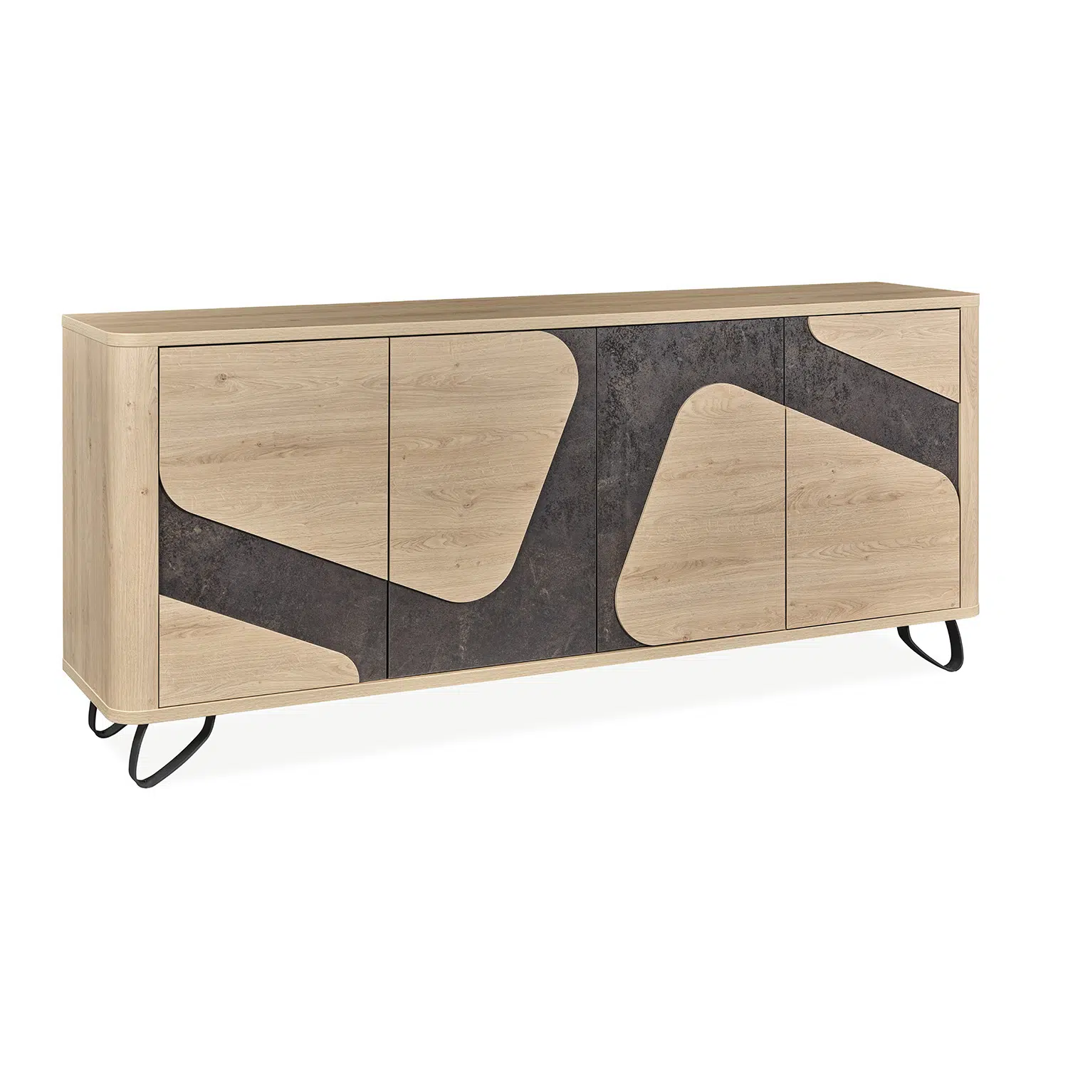 Côtés : panneaux de particules revêtus de mélamine ton chêne naturel avec nœuds.